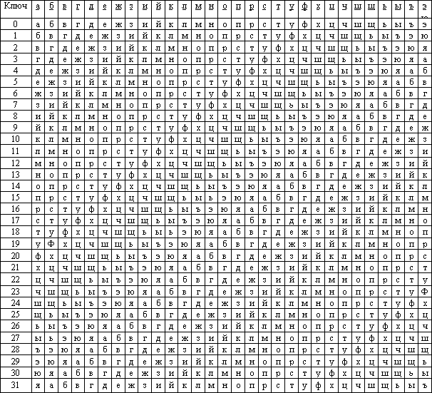 | Шифр | Г | Ч | Ш | И | Р | М | С | У | С | П | Я |