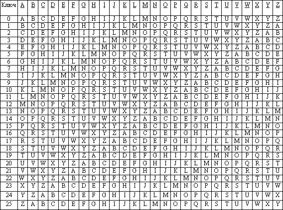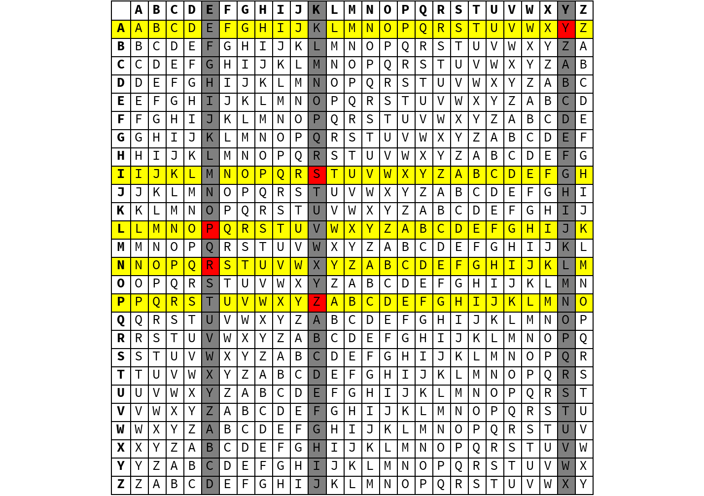 Після того, як ваша заміна, згадана на малюнку 1, буде готова, наступним кроком буде використання квадрата Віженера для шифрування вашого повідомлення. На малюнку 2 зображено квадрат Віженера.